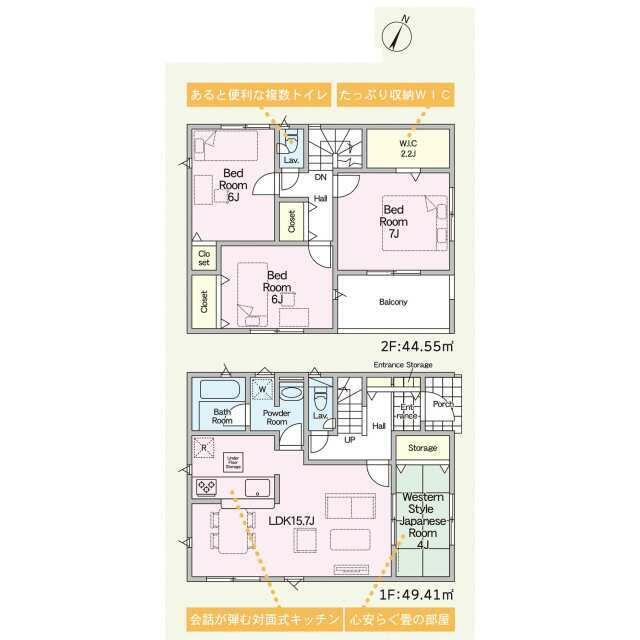 号棟番号:2号棟 条区域 延床面積に別途ルーフバルコニー約6.48平米有り |