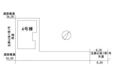 号棟番号:4号棟 最低敷地面積165平米 土地面積に路地状部分約51平米含む 南西側道路は都市計画道路(3・2・1学園東大通り線、計画幅員34m)で拡張済み |
