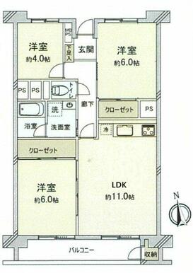 | 間取り(内訳) | 3LDK(LDK11、洋6、6、4.5) | ||